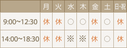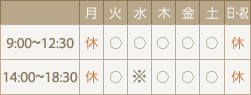 診療時間:9:00~18:30(昼休み 12:30~14:00)